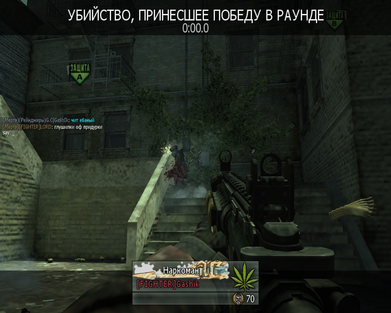 Мего скилоклан попался , писали матом в чат , не поставили пароль , ихний друг зашел убил двоих и раунд слили , они раунд сливать отказались ( за это тп ставить уже можно ) , + их третья карта была опятьже Skidrow (повторно брать нельзя) , короче LOL кв . Выиграли 2:1 . Наша(Favela)  Вот этот чувак который всех убил :D  Неадекват с их стороны :