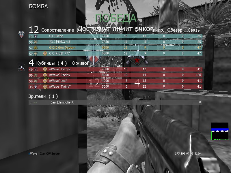 Первоче кв в БО началось охуенно , давольно таки сильный клан nWave на первое карте не постесняюсь за слово ВЫЕБАЛИ , однако после чего на след мапе , они сказали в уак3 , мы согласились , но т.к у кота небыла уака , мы попросили просто со скринами они согласились , мы снова вели , и блять хашел какой-то чувак , проскилл ник , и начала всех сносить , пошли прострелы , дак он ещё и своим говорил где кто , в общем полный пздц ... Плюс был мат , кк. Тп! Fairing Range: