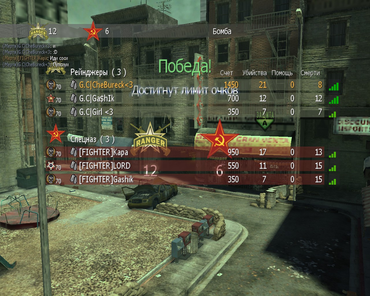 Мего скилоклан попался , писали матом в чат , не поставили пароль , ихний друг зашел убил двоих и раунд слили , они раунд сливать отказались ( за это тп ставить уже можно ) , + их третья карта была опятьже Skidrow (повторно брать нельзя) , короче LOL кв . Выиграли 2:1 .